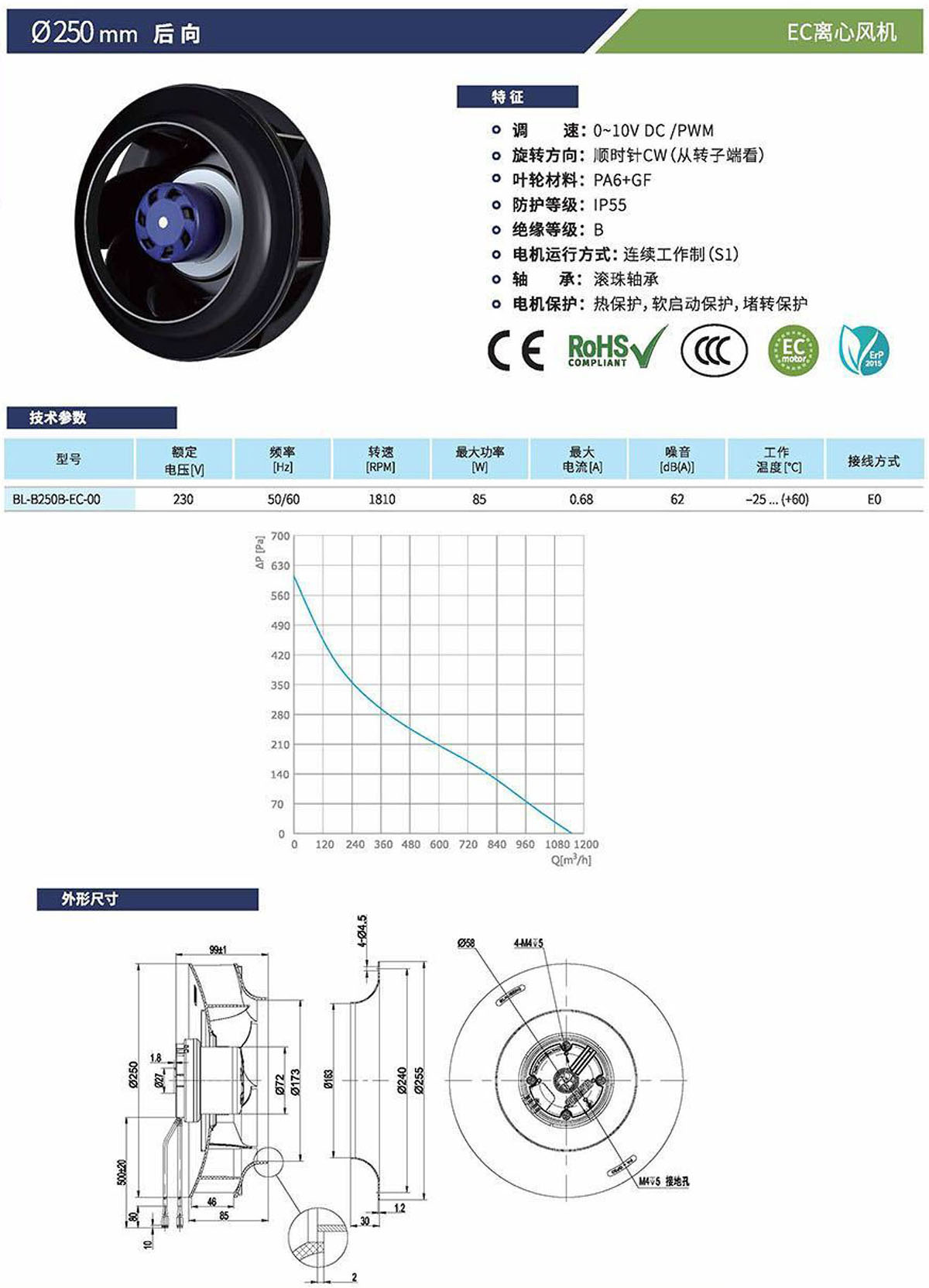 EC后倾离心风机