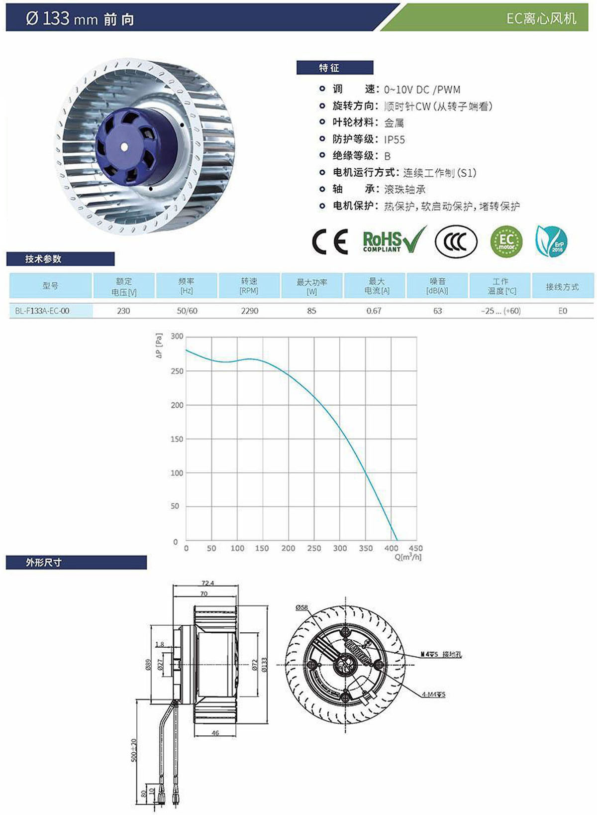EC后倾离心风机