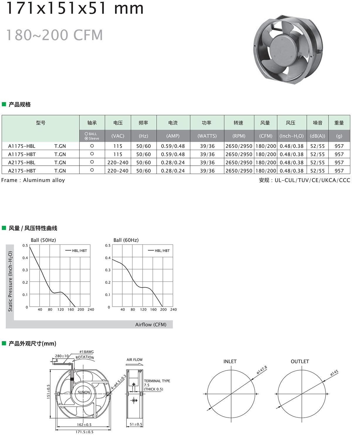 下一个:⌀171×51mm 203~239CFM