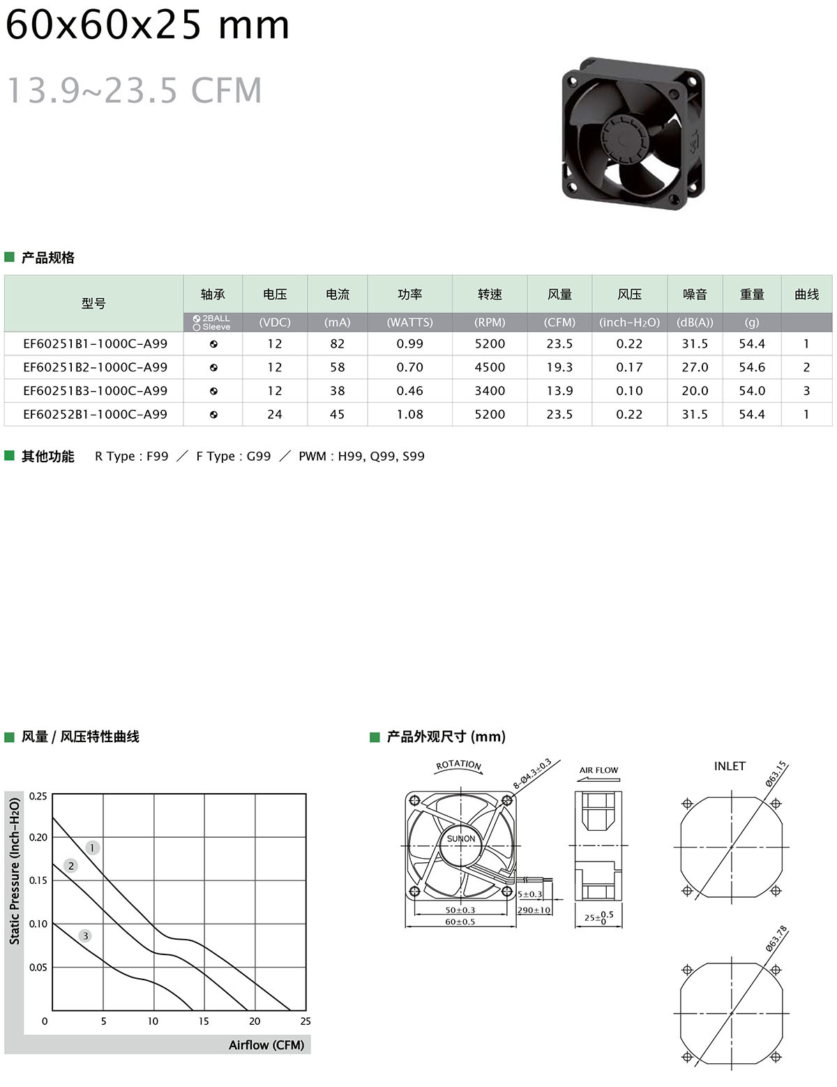 60×60×25mm 13.9~23.5CFM